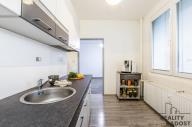 Zrekonstruovaný byt 3+1 bez balkonu v prvním patře panelového domu po revitalizaci (plastová okna, fasáda, střecha, stoupačky, výtah - příští rok). Zděné jádro, prostorná koupelna s vanou, WC, nová kuchyně. Plovoucí podlahy, ústřední dálkové vytápění. Vestavěné skříně v chodbě. Velmi dobrá orientace na V, J ai Z, takže sluníčko budete mít v bytě po celý den. Klidný dům. Měsíční náklady 5.600,- Kč + el.. Sklepní koje. Strategická poloha Náchodského sídliště. Veškerá občanská vybavenost v místě. Bezproblémové parkování před domem.
