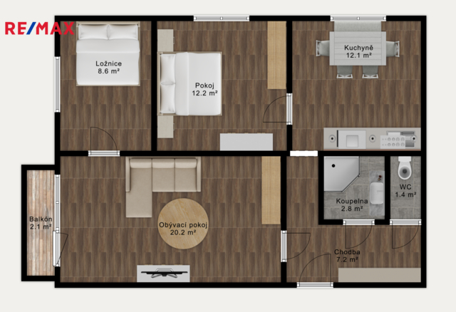 Bytová jednotka je složena z předsíně, obývacího pokoje, ložnice, dětského pokoje, kuchyně, koupelny s WC. Byt se prodává nezařízený a je po částečné rekonstrukci, při které nebyla změněna jeho původní dispozice. Procházet se budete po plovoucí podlaze, která dominuje obývacímu pokoji, v ložnici, dětském pokoji a kuchyni. Jádro a chodba, dlažba. Nové jsou i interiérové dveře. Částečná rekonstrukce proběhla přesně dle představ a potřeb majitelů. Velkou výhodou tohoto bytu je skutečnost, že nový majitel krásného a prostorného bytu, zde může uskutečnit své nápady od vchodových dveří až po poslední okno. Předností této nabídky je dispozice bytu s prostorným balkonem a v krásným výhledem na město. Klidné prostředí plné zeleně.