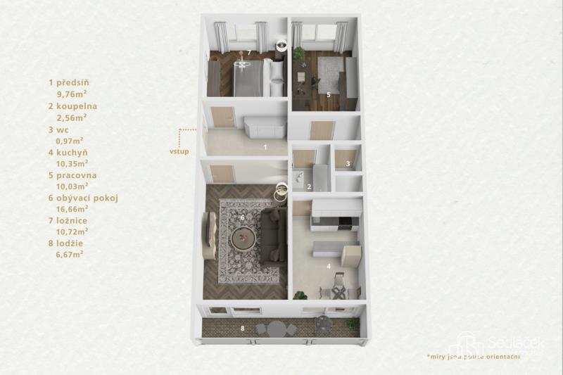Nabízíme k prodeji prostorný a světlý byt s lodžií o dispozici 3+1 a podlahové ploše 69 m². Byt se nachází v 9. patře panelového domu v jedné z nejžádanějších lokalit Prahy 4, v ulici Horáčkova, jen pár kroků od obchodního centra Arkády Pankrác. Dispozice bytu je praktická a funkční. Nabízí tři samostatné pokoje, včetně prostorného obývacího pokoje se vstupem na lodžii, která se táhne od obývacího pokoje až ke kuchyni. Kuchyně je řešena jako samostatná místnost s dostatkem prostoru pro každodenní provoz. Vstupní chodba s vestavnými skříněmi, koupelna s vanou a samostatné WC. K bytu náleží praktická komora umístěná přímo na patře, která nabízí další úložný prostor. Byt má nízké provozní náklady. Jednou z hlavních předností tohoto bytu jsou unikátní a ničím nerušené výhledy. Z jedné strany se otevírá panorama s výhledem na Pražský hrad, z druhé strany výhled až na Cukrák. Každý den zde nabízí mimořádnou atmosféru, dostatek světla a pocit otevřeného prostoru. Byt je vybaven plastovými okny a zasklenou lodžií. Dispozice je přehledně znázorněna v půdorysu, který je součástí fotodokumentace. Lokalita patří dlouhodobě mezi nejvyhledávanější v rámci Prahy 4. V pěší dostupnosti se nachází stanice metra Budějovická a Pankrác, stejně jako autobusové zastávky s výbornou návazností na centrum města. Samozřejmostí je rychlé napojení na městský okruh i dálnici D1. V bezprostředním okolí je kompletní občanská vybavenost, obchody, restaurace, kavárny, školy, školky i zdravotnická zařízení. Pro relaxaci a volnočasové aktivity lze využít blízké parky a zeleň, například Centrální park Pankrác nebo park Jezerka. Tato nemovitost představuje ideální volbu jak pro komfortní vlastní bydlení, tak i jako stabilní a dlouhodobě atraktivní příležitost k pronájmu, a to díky lokalitě a vysoké poptávce v této části Prahy. Součástí inzerce jsou také vizualizace, které slouží výhradně k ilustraci možného budoucího stavu interiéru. Pro více informací nebo sjednání osobní prohlídky nás neváhejte kontaktovat.