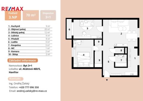 Mám já ten Havířov opravdu rád - a rád se sem pracovně vracím! Dnes jeden z větších bytů a dobrá možnost pro Vás pořídit si vlastní rodinné bydlení za rozumnou cenu. Byt 3+1 s lodžií je v ideální "třiplusjedničkové" dispozici, kuchyně zvlášť, okna bytu jsou orientována na dvě strany domu - obývací pokoj a kuchyně směrem východ, dětský pokoj a ložnice směr západ. Doporučuji přiložený půdorys, variabilní možnosti propojení obývacího prostoru a kuchyně s úpravou rozměrů jádra. Plocha bytu včetně lodžie je 68 m2 plus sklep 2 m2 = 70 m2. Byt je povětšinou v původním stavu, nicméně v případě potřeby v pohodě obyvatelný viz foto, vše funkční. Třetí nadzemní podlaží - postaru řečeno: "druhé patro" s výtahem. Dům po revitalizaci, velmi dobré skóre v terminologii PENB = B.