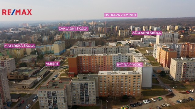 Dobré místo nejen v rámci Havířova - jedná se o úplný okraj sídlištní zástavby a zeleň začíná 50 metrů od domu. Rozsáhlé možnosti sportovních aktivit, ať již na některém z hřišť přímo v rámci sídliště, nebo směrem do přírody. V minutách pěšky vše co k rodinnému životu patří: Mateřská škola i dvě školy základní, Albert a další obchody, rozlehlé lesy v pěším dosahu, cyklostezky, běh, kousek za lesem plavání, prostě aktivity v zeleni atd. atd. Případně na druhé straně města na kole nebo autem velmi dobře dostupná Těrlická a Žermanická přehrada a další rekreační projekty v blízkosti jsou již v plánu města Havířov.