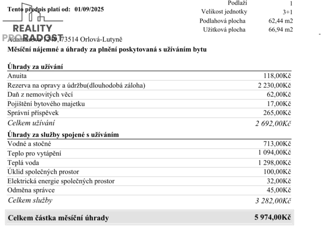 Hledáte byt po kompletní rekonstrukci, na dobré adrese a navíc s velkou zasklenou lodžií? Tak u tohoto bytu nemusíte dělat žádné kompromisy -splňuje vše . Je vzdušný, světlý a po otevření dveří na vás dýchne pocit pohody a domova. Byt 3+1 s lodžií je o celkové výměře 67m2 a nachází 1.nadzemní podlaží z 9 . na ulici Adamusova v Orlové - Lutyni. Byt není možné převést do osobního vlastnictví. Čím vás byt zaujme: - Budete bydlet na dobré adrese = skvělá lokalita plná zeleně s veškerou občanskou vybaveností - Byt je po kompletní rekonstrukci před 2 lety - Neprůchozí pokoje - zasklená lodžie 4 m2 - komora – ta se v bytě vždy hodí - Orientace bytu na 2 světové strany Rozpis záloh je ve fotu. Dům je po kompletní revitalizaci. Pokud řešíte financování, mám pro Vás mou výborného hypotéčního poradce, který Vám vyřídí tu nejvýhodnější hypotéku na trhu. V případě více zájemců bude nemovitost prodána nevyšší nabídce a majitel si vyhrazuje právo vybrat kupujícího na základě jím zvolených kritérií. Veškeré zveřejněné údaje obsažené v tomto inzerátu mají pouze informativní charakter a nejsou nabídkou ve smyslu § 1731 nebo § 1732 občanského zákoníku, ani se nejedná o veřejný příslib dle § 1733 občanského zákoníku. Na setkání s vámi se těší Petra Janštová Realitní specialista