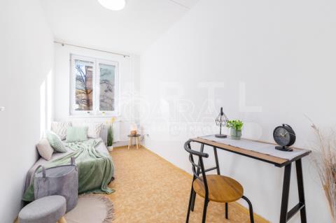 Bytová jednotka se nachází ve 2. patře revitalizovaného panelového domu s novým výtahem. Dům prošel kompletní rekonstrukcí, je zateplený a společné prostory jsou udržované a čisté, bez nutnosti dalších větších investic. Orientace oken na jih zajišťuje dostatek denního světla po celý den a příjemně vzdušnou atmosféru interiéru. Dispozice nabízí vstupní předsíň, samostatnou kuchyni, obývací pokoj, ložnici, další pokoj, koupelnu a oddělené WC. Velkou výhodou jsou tři neprůchozí pokoje, které poskytují dostatek soukromí a praktické uspořádání pro rodinné bydlení i případný pronájem.