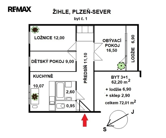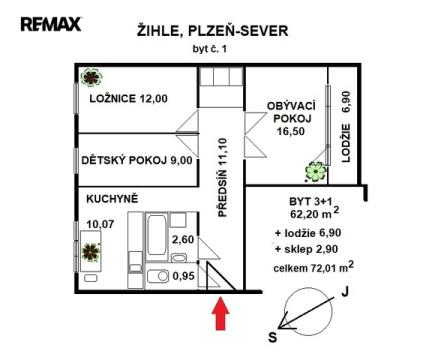 Nabízíme prodej bytu 3+1 s lodžií v panelovém domě v Žihli, Plzeň-sever. Podlahová plocha bytu je 62 m2, velká lodžie má plochu 6,89 m2 a sklep v suterénu 2,9 m2. Celková plocha bytu včetně příslušenství činí 72,01 m2. Byt se nachází v 1. podlaží domu bez výtahu. Je určen k celkové rekonstrukci podle vašich představ. Bytové jádro je lehce demontovatelné (umakart) a stejně tak lze v případě potřeby vybourat i některé mezipokojové příčky a změnit dispozici podle vlastních plánů. Dispozice a orientace bytu je patrná z přiloženého plánku. Kuchyně, dětský pokoj a ložnice jsou orientovány severovýchodním směrem. Obývací pokoj s lodžií směřuje jihozápadním směrem. Dům je napojen na obecní vodovod, kanalizaci a plynovod. Centrální vytápění a ohřev vody zajišťuje domovní plynová kotelna. Fond oprav činí 30 Kč/m2. Dům má novější zateplenou fasádu, což snížilo náklady na vytápění. Nachází se v klidné části obce s možností volného parkování před i za domem. Prodávající si vyhrazuje právo vybrat kupujícího na základě jím zvolených kritérií.
