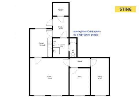 Nabízíme k prodeji byt v osobním vlastnictví o dispozici 3+1 s užitnou plochou 76 m², situovaný v přízemí cihlového domu se čtyřmi bytovými jednotkami. Součástí je také velký, společně užívaný a oplocený pozemek, na kterém máte podíl – včetně podílu na půdě vhodné pro případnou budoucí výstavbu. K bytu dále patří vlastní sklep (7 m²) a samostatný sklad (12 m²). Přímo u vstupu se nachází kryté parkovací stání a upravené, částečně uzavřené posezení s krbem, ideální pro trávení času venku za každého počasí. Byt je vyklizený a připravený k rekonstrukci, s výjimkou koupelny a WC, které prošly renovací v roce 2004 (včetně nových rozvodů vody a odpadů). Vytápění zajišťují plynová topidla, ohřev vody plynová karma. K praktickému využití slouží také prostorná komora – vhodná jako šatna, technická místnost či úložný prostor. Dům leží na ulici Brněnská a je napojen na veškeré inženýrské sítě (elektřina, plyn, voda, kanalizace, internet). Na pozemku je k dispozici také studna. Střešní krytina z keramických glazovaných tašek byla kompletně obnovena v roce 2021. Lokalita na okraji Hodonína nabízí velmi dobrou dopravní dostupnost – nájezd na obchvat i autobusová zastávka jsou do 400 m od domu. Za objektem je podle územního plánu plánována nová obytná zóna se zelení, která může zvýšit atraktivitu celé lokality. Těším se na prohlídky. Do konce ledna 2026 nabízíme prostřednictvím našeho partnera úrokové sazby od 4,29 % p.a. Více informací Vám sdělí náš specialista na prohlídce.