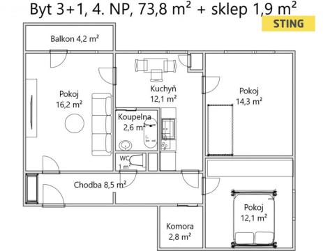 Nabízíme k prodeji prostorný byt o dispozici 3+1 s balkónem, komorou a sklepní kójí v Olomouci. Dobře udržovaný byt se nachází ve 4.NP revitalizovaného panelového domu, který má přes sklepní prostor a výtah bezbariérový přístup do bytu. Ten má vyměněna plastová okna a osazen dveřní videotelefon. Parkování na parkovišti před domem. V blízkosti domu se nachází autobusové zastávky, FNO a veškerá občanská vybavenost. Do konce února 2026 nabízíme prostřednictvím našeho partnera úrokové sazby od 4,29 % p.a. Více informací Vám sdělí náš specialista na prohlídce.