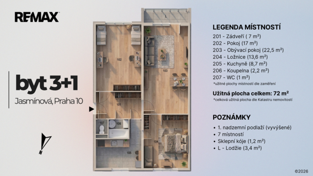 Dovolujeme si vám exkluzivně nabídnout ke koupi prostorný a velmi dobře řešený byt o dispozici 3+1 v osobním vlastnictví, situovaný na pomezí Záběhlic a Zahradního Města v ulici Jasmínová. Lokalita vyniká především svou vynikající dopravní dostupností, kdy se díky blízké zastávce MHD dopravíte na stanici metra Skalka (A) za pouhých 7 minut. Bytová jednotka o celkové užitné ploše 72 m² se nachází v kompletně revitalizovaném panelovém domě. Budova prošla zateplením obvodového pláště, díky čemuž nabízí moderní vzhled, ale především vysokou energetickou efektivitu a nízké provozní náklady pro majitele. K bytu náleží příjemná lodžie o velikosti 3,4 m² orientovaná na jižní stranu do klidné ulice a praktický sklep o rozloze 1,2 m². Interiér bytu je v zachovalém, zcela původním technickém stavu, což z něj činí ideální příležitost pro zájemce hledající prostor k realizaci vlastních představ o moderním bydlení. Tato nemovitost umožňuje kompletní modernizaci přesně na míru vašim potřebám. Velmi cenným prvkem je nedávná revitalizace infrastruktury přímo před domem, která přinesla dostatečné parkovací kapacity a moderní nabíjecí stanice pro elektromobily. Vytápění a ohřev vody jsou řešeny centrálním dálkovým rozvodem a celou budovu spravuje řádně fungující SVJ. Zahradní Město je dlouhodobě vyhledávanou rezidenční lokalitou díky své unikátní urbanistické koncepci a excelentní občanské vybavenosti. Jen pár kroků od domu naleznete obchodní centrum Cíl se supermarketem, fitness centrem a pestrou škálou služeb. Pro volnočasové aktivity či nákupy je v docházkové vzdálenosti přibližně 10 minut dostupné také nákupní centrum VIVO! Hostivař s multikinem a saunovým světem. Okolí domu je bohaté na zeleň, což vytváří příjemné prostředí pro odpočinek i aktivní život v metropoli. Místo je ideální volbou pro rodiny s dětmi, neboť v bezprostřední blízkosti se nacházejí mateřské i základní školy, moderní hřiště a unikátní dětské dopravní hřiště. Zdravotní péči zajišťuje nedaleká Poliklinika Zahradní Město. Kromě rychlého spojení na metro těží lokalita také z blízkosti moderního dopravního uzlu Nádraží Zahradní Město, který integruje tramvajové linky a vlakové spoje. Pro cestování automobilem je zásadní plynulé napojení na Městský okruh a Jižní spojku. Z investičního pohledu se jedná o nemovitost s vysokým potenciálem kapitálového zhodnocení po provedené rekonstrukci. Právní stav nemovitosti je bezvadný – jednotka je v osobním vlastnictví a list vlastnictví je prostý jakýchkoliv zástav, exekucí či věcných břemen. Koupi lze bez problémů financovat hypotečním úvěrem. Tato nabídka představuje vynikající příležitost pro bezpečné rodinné bydlení s veškerým komfortem na dosah ruky. V případě zájmu o prohlídku či podrobnější konzultaci mě neváhejte kontaktovat. Prodávající si vyhrazuje právo vybrat kupujícího na základě jím zvolených kritérií.