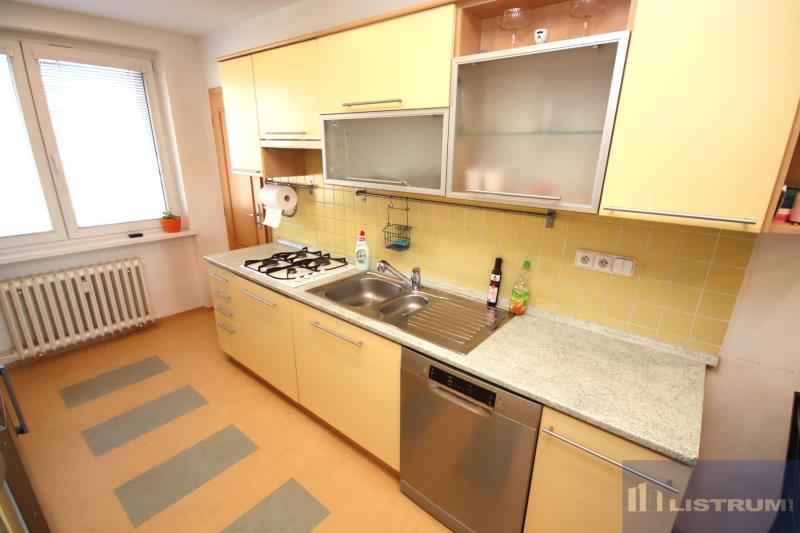 Nabízíme k prodeji byt 3+1 s lodžií, v osobním vlastnictví, o celkové výměře 77 m2 v 7.NP/11.NP a s placeným parkovacím místem přímo před domem, na ul. Srbská, Ostrava - Výškovice, na okraji zástavby u Bělského lesa s výhledem do lesa. Byt byl v roce 2015 kompletně rekonstruován, přičemž předmětem rekonstrukce byla rovněž změna dispozice, když vznikl propojený obytný prostor tvořený obývacím pokojem, jídelnou a kuchyní. V rámci rekonstrukce byla provedena rovněž výměna elektroinstalace v celém bytě, omítky, interiérové dveře, plovoucí podlahy a měkčené PVC, nová koupelna, samostatné WC, oddělené zádveří, kuchyňská linka se spotřebiči, vestavné skříně v ložnici, dětském pokoji a na chodbě. instalovány vestavné skříně do zádveří a do chodby. Byt je prostorný, s velmi dobrou dispozicí, všechny pokoje jsou neprůchozí a je tvořen kuchyní propojenou s jídelnou a obývacím pokojem (celkem cca. 27 m2) se vstupem na lodžii, ložnicí (13 m2), dětským pokojem (19 m2), koupenou, WC, komorou a vstupní chodbou. K bytu náleží placené parkovací stání přímo před domem a sklepní kóje. Zásadní výhodou bytu je jeho umístění ve velmi atraktivní lokalitě na konci zástavby s výhledem do lesa a dále do krajiny. Veškerá občanská dostupnost v místě (MŠ 50 m, ZŠ 200 m, MHD BUS 250 m, MHD tramvaj 350 m). Dům je po kompletní revitalizaci (zateplení, střecha, plastová okna, vstup, stoupačky, výtah), přičemž úvěr na revitalizaci je již zcela splacen.