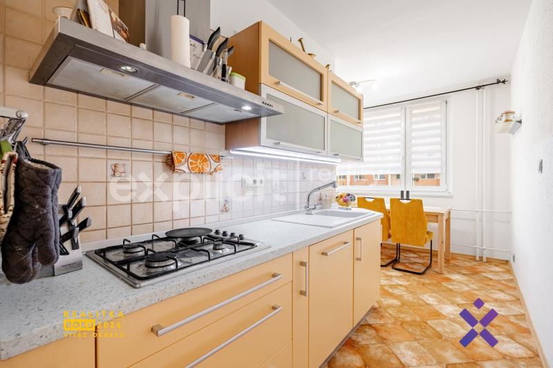 Nabízíme k prodeji příjemně dispozičně řešený byt 3+1 o celkové ploše 79 m2 v Hulíně. Byt se nachází v klidné části města s výbornou občanskou vybaveností v okolí. - světlý, vzdušný a udržovaný byt - dostatek úložného prostoru - dostatek pokojů se samostatným vstupem - klidná lokalita s kompletní občanskou vybaveností Po vstupu do bytu se ocitnete v prostorné chodbě vybavené velkou skříní, komodou, botníkem a další skříňkou - tyto prvky poskytují dostatek úložného prostoru pro celou rodinu. Z chodby je vstup do všech místností. Po levé straně se nachází samostatné WC. Naproti toaletě je situován dětský pokoj. Vedle dětského pokoje se nachází ložnice s psacím stolem a velkou rohovou skříní. Z ložnice je vstup na lodžii, která poskytuje možnost odpočinku na čerstvém vzduchu. Další místností je obývací pokoj vybavený TV stolkem s televizí, konferenčním stolkem a komodou. Celému prostoru obývacího pokoje dodává elegantní vzhled kamenný obklad. Chodba plynule přechází do kuchyňského prostoru bez dveří. Kuchyně je řešena účelně – kuchyňská linka s varnou deskou a digestoří navazuje na jídelní kout se skříní, jejíž součástí je vestavěná trouba a mikrovlnná trouba. Z této části je vstup do koupelny, která je laděná do oranžovo-bílého obkladu a disponuje vanou a pračkou. Byt jako celek působí čistě, svěže a nabízí velmi příjemné rodinné bydlení. V okolí domu najdete vše, co ke komfortnímu životu potřebujete. Přímo u domu je dětské hřiště a v pěší dostupnosti pak pekárna, workout hřiště, mateřská škola, lékárna, potraviny i restaurace. Pokud hledáte útulný a připravený byt pro okamžité bydlení, je tato nabídka ideální volbou. Budu se těšit na společné prohlídky tohoto krásného bytu.. Ing. Martin Souček, realitní makléř Explicit Reality.