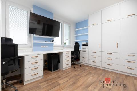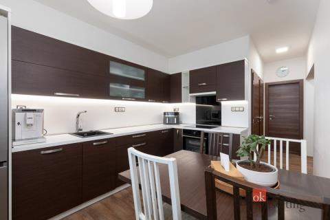 Byt je po velice pečlivé a důkladné rekonstrukci (prodávající je autorizovaný stavební inženýr), která proběhla před 10 lety. V rámci rekonstrukce došlo ke zvětšení koupelny, toaleta je samostatně, součástí bytu je praktická komora o velikosti 2,06 m². Dále pak bezpečnostní dveře do bytu a elegantní posuvné dveře do obývacího pokoje, které dodávají interiéru vzdušnost a zároveň umožňují obývací pokoj snadno uzavřít pro větší soukromí. Velkou výhodou je zabudovaná a udržovaná klimatizace v obývacím pokoji, která zajistí příjemné žití i v období horkých letních dnů. Elektroinstalace je komplet v mědi.