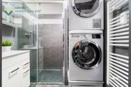 Prošel v roce 2021 náročnou generální rekonstrukcí veškerých vnitřních povrchů, rozvodů a bytového jádra. Laděn je dekory do moderní a nadčasové kombinace bílé, šedé a černé.