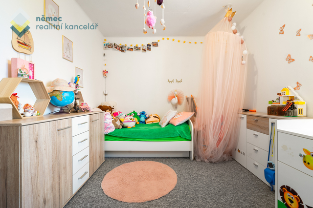Dispozice tohoto 3+1: Po vstupu do bytu se octnete v prostorné centrální chodbě (7,46 m²), z níž je možné vstoupit doprava do obývacího pokoje (22,16 m²) orientovaného na jih. Na ten navazuje velká ložnice (14,93 m²) orientovaná, stejně jako dětský pokoj (12,26 m²) na východ. Dětský pokoj je přístupný i z druhé části bytu z kuchyně (10,24 m²), která má okno na severní stranu před dům. Je zařízena linkou na míru vč. vestavných spotřebičů na míru. Nabízí jídelní kout, ačkoliv je obývací pokoj dostatečně prostorný pro jídelní stůl. Stejným směrem je i okno z předsíně a toalety (1,38 m²). Odvětrávaná je i spíž (0,91 m²). Praktická je pak koupelna, která nabízí kromě velkého walk-in sprchového koutu prostor pro pračku se sušičkou.