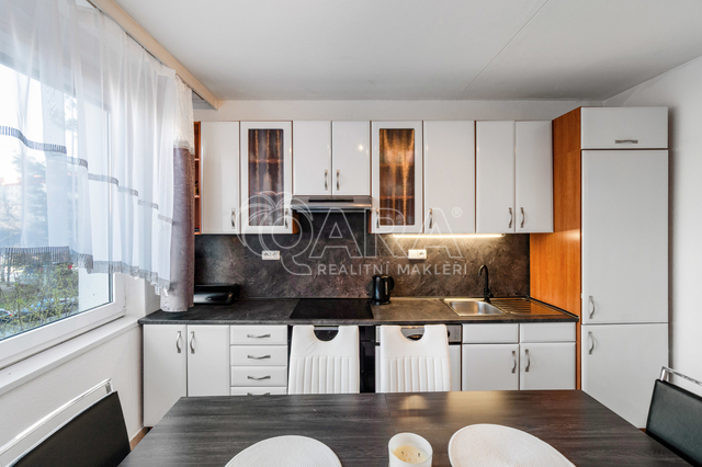 Samotný byt se nachází v 1. patře zatepleného panelového domu s výtahem a skvěle fungujícím SVJ. Dispozice bytu je velmi praktická – z chodby se dostanete do všech místností. Obývací pokoj a kuchyně jsou separátní, obě ložnice jsou dostatečně prostorné a neprůchozí. Koupelna disponuje rohovou vanou, prostorem pro pračku, toaleta je oddělená. Jednotka je celkově ve velmi dobrém a udržovaném stavu. Navíc máte k dispozici i balkon, kde si v budoucnu můžete vychutnávat příjemné chvilky na vzduchu. K bytu náleží komora v chodbě na patře a dále sklepní kóje v suterénu domu.