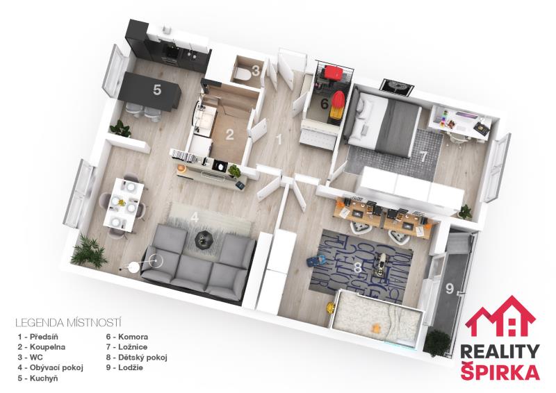 Nabízíme k prodeji kompletně rekonstruovaný byt v osobním vlastnictví o dispozici 3+1 s lodžií, nacházející se ve 2. NP panelového revitalizovaného domu s výtahem. Podlahová plocha bytu činí 82,5 m2 a dále plocha lodžie 4,3 m2. V rámci společných prostor je k bytu formou výlučného užívání i potravinový sklípek a společného užívání kolárny, sušárny a společenské místnosti. Dispoziční řešení bytu je zobrazeno formou 3D půdorysu v prezentaci. Rekonstrukce od stavební firmy z roku 2025 obsahovala: koupelna s prostorným sprchovým koutem a samostatné WC (zděné jádro), kuchyňská linka včetně vestavěných spotřebičů, kompletní rozvody vody odpady a elektřiny vč. rozvaděče a jističů, podlahová HDF krytina v kuchyni a na chodbě. Dále z roku 2017 podlahová krytina v obývacím pokoji, dětském pokoji a ložnici. Vytápění bytu a ohřev vody je zajištěn dálkově, kdy radiátory jsou osazeny měřiči tepla. Parkování je zajištěno přímo před domem. V blízkém okolí domu je k dispozici dětské hřiště, školka, škola, obchod, restaurace, pošta, benzínová pumpa atd. Zajistíme Vám výhodné financování a případně další služby. Pokud vás tento byt zaujal, neváhejte nás kontaktovat. Rád vás provedu bytem při individuální prohlídce, kde i zodpovím veškeré další dotazy ohledně bytu, rekonstrukce či možnosti financování. Těším se na vás, a kdo ví, třeba se právě tento byt stane vaším novým domovem.