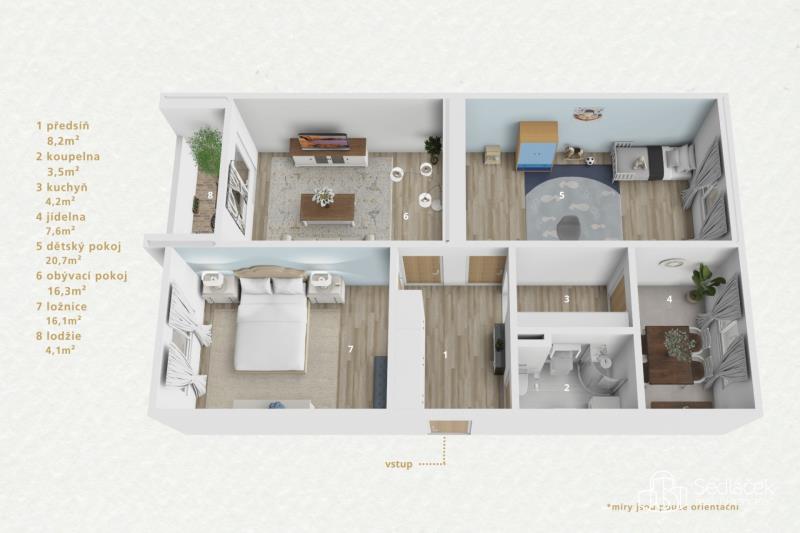 Nabízíme k prodeji prostorný byt 3+1 s balkonem o výměře 82 m², umístěný ve 2. nadzemním podlaží kompletně revitalizovaného bytového domu v žádané a klidné lokalitě Sokolova. Dům se nachází na okraji sídliště, v bezprostřední blízkosti Areálu zdraví a koupaliště, v prostředí se zelení a výbornou dostupností. Veškerá občanská vybavenost je v docházkové vzdálenosti. Dispozice bytu je velmi funkční – všechny pokoje jsou řešeny jako samostatné, neprůchozí. Pro lepší orientaci je k inzerátu přiložen půdorys bytu. Koupelna prošla rekonstrukcí přibližně před 8 lety (sádrokartonové jádro, sprchový kout). Ostatní části bytu jsou v původním stavu, což nabízí ideální možnost úprav dle vlastních představ. Byt je světlý, vzdušný a má velmi dobrý potenciál. Součástí prezentace jsou také vizualizace kuchyně a obývacího pokoje, které ukazují možnou moderní podobu bytu po rekonstrukci. Pro více informací nebo domluvení prohlídky mě neváhejte kontaktovat. V případě zájmu jsme schopni pomoci se zajištěním financování.