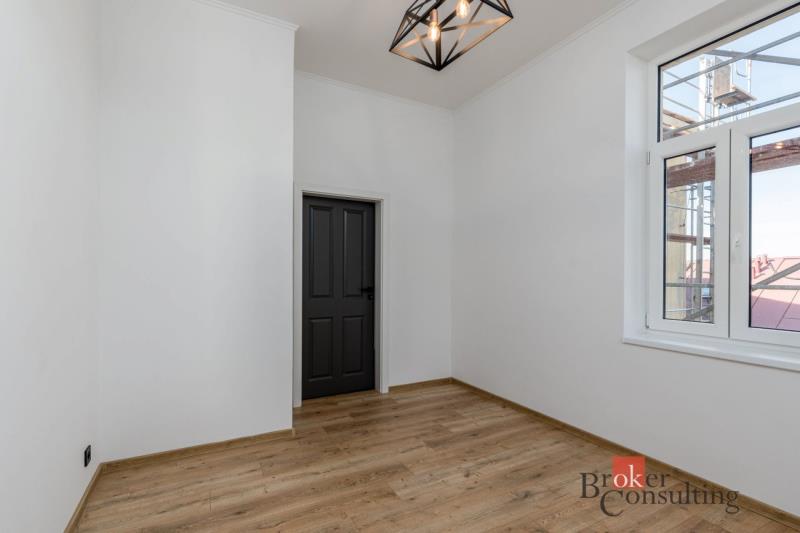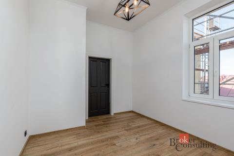 Byt prošel kompletní rekonstrukcí, při které byl kladen důraz na kvalitu použitých materiálů, nadčasový design a maximální zachování historického ducha stavby. Vysoké stropy, velkorysé prostory a dostatek denního světla vytváří příjemnou atmosféru pro život i reprezentaci. Kuchyň je plně vybavena moderními spotřebiči, koupelna a WC jsou samostatné a vkusně obložené kvalitní keramikou. Celkový styl interiéru spojuje eleganci, funkčnost a respekt k historii.