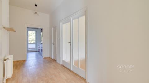 Soccer Reality vám exkluzivně zprostředkuje prodej výjimečného a slunného bytu o dispozici 3+1 s obytnou plochou 87,5 m², který je doplněn o ohromnou plochu dvou teras o celkové rozloze 48,8 m². Byt se nachází ve 4. patře (nejvyšším patře) udržovaného cihlového domu s výtahem na ulici Patočkova, což zajišťuje maximální klid a soukromí. Tento byt je skutečnou raritou díky svým venkovním prostorům, které jsou jeho hlavní dominantou. K bytu náleží dvě rozlehlé terasy, které se rozprostírají přes celou délku jižní i severní části bytu. Jižní terasa je ideální pro celodenní slunění, grilování a posezení s výhledem, zatímco severní terasa poskytuje chladivý odpočinek v parném létě a je vhodná pro pěstování zeleně. Interiér bytu je vybaven zachovalými dřevěnými parketami, které tvoří elegantní a teplou atmosféru. Kuchyň je kompletně zařízená a disponuje praktickou komorou. Koupelna je velmi prostorná s vanou, přičemž toaleta je samostatně. K bytu náleží také prostorný sklep. Sklepy v domě prošly rozsáhlou rekonstrukcí. Dům se nachází v tiché části Střešovic, přičemž celý objekt je oplocen, což zvyšuje pocit soukromí a bezpečí. Parkování je možné na ulici před domem nebo na menším parkovišti přímo u domu. Lokalita se pyšní výjimečnou občanskou vybaveností a dopravní dostupností: Jen dvě minuty chůze na tramvajovou zastávku a veškerá občanská vybavenost (pošta, potraviny, kavárny, restaurace, kino) je v docházkové vzdálenosti. Relaxaci a sport zajistí nedaleké koupaliště Petynka, které je přímo za domem. Navíc jen přes ulici vstupujete do rozsáhlého parku, který plynule přechází do Hradčan, díky čemuž se k Pražskému hradu dostanete klidnou, 15ti minutovou procházkou zelení. Milovníci procházek a výhledů ocení i fakt, že na Petřín dojdete za pouhých 30 minut a v blízkosti Strahova najdete spoustu sportovního vyžití. Nenechte si ujít tuto příležitost vlastnit byt ve Střešovicích, který kombinuje klidné bydlení a excelentní dostupnost do centra. Pro více informací nebo domluvení prohlídky nás neváhejte kontaktovat. Majitel si vyhrazuje právo vybrat si zájemce dle vlastních kritérií.