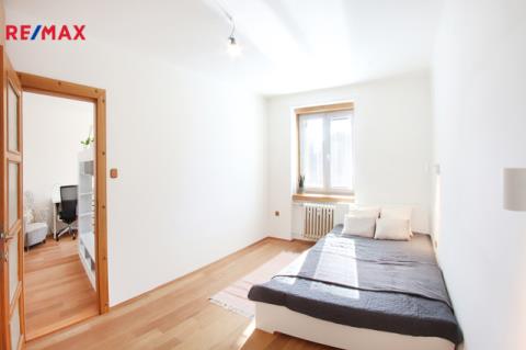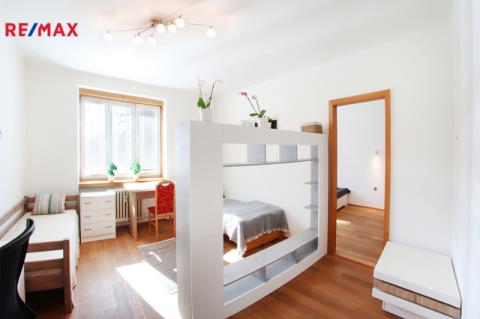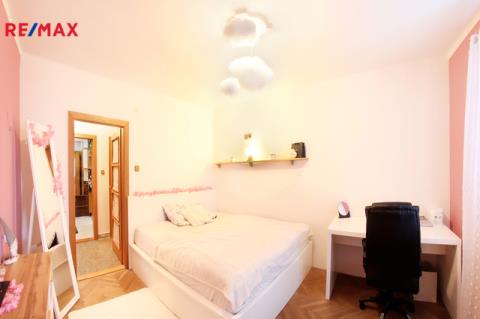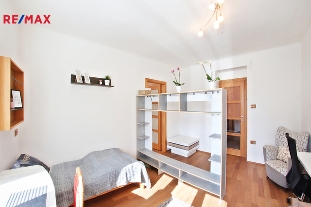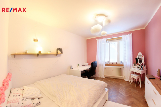Rezervováno. Výborný poměr lokalita/cena! Hledáte bydlení pro rodinu, útulný byt na dobrém místě, ze kterého budete mít všude blízko? Máte jej mít! Tahle třiplusjednička totiž má - mimo jiné samozřejmě - dobře vymyšlenou dispozici, samostatnou kuchyni, spoustu místa v poctivých a hlubokých vestavných skříních, koupelnu s vanou v kombinaci se sprchovým koutem, samostatné WC, východní i západní sluníčko, atd. atd. Kuchyně a ložnice orientovány směrem do dvora, okna obývacího a dětského pokoje na příjemně slunný západ, z obou stran chráněno zelení, výborně udržíte dobré klima v bytě. Ke kuchyni náleží také extra místnost - velká spíž. Doporučuji ke shlédnutí půdorys a virtuální 3D prohlídku ve fotogalerii, kde si můžete projít celý byt krok po kroku - včetně interaktivního půdorysu, ve kterém si můžete libovolně měřit. Vestavné skříně vpravdě nadstandardních rozměrů jsou umístěny v předsíni a reálně řeší uložení komplet věcí celé rodiny.