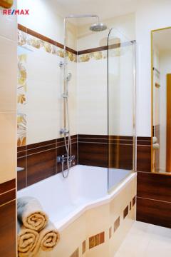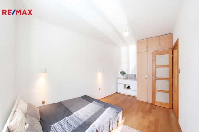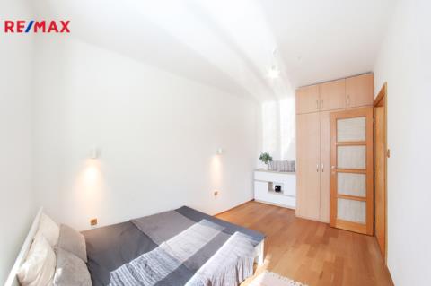 Byt po většinové postupné rekonstrukci (nejnověji koupelna 2014 a dřevěné podlahy 2017), vše funguje jak má. Podlahy jsou v materiálech dlažba, teraso, xylolit, parketové vlysy a dřevěné plovoucí podlahy. Čistá vnitřní výměra bytu je 88 m2. V mezipatře je umístěn balkon, který je orientován do dvora a je přístupný ze společné chodby domu. V suterénu domu se nachází pěkný čistý sklep o výměře 10 m2, který patří k bytu a ke kterému je samostatný přístup nejen zevnitř domu, ale také pohodlně přímo z chodníku - výborné pro uložení věcí, kol, lyží, malou dílnu atd. Dále kolovna a mnoho dalších volných společných prostor k dispozici.