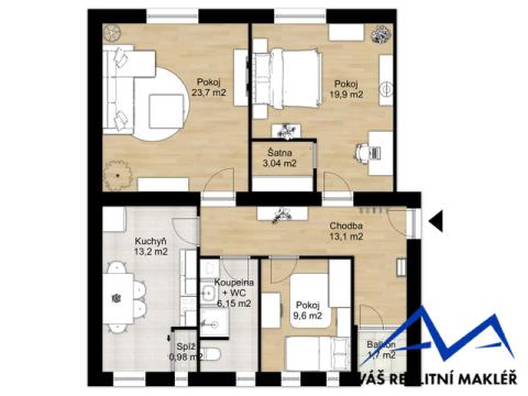 Nabízím Vám ke koupi prostorný byt v osobním vlastnictví o dispozici 3+1 s balkonem, nacházející se v atraktivní lokalitě centra Ostravy na ulici náměstí Msgre Šrámka. Byt o celkové výměře 93 m² se nachází v cihlovém domě, ve 3 ze 4 nadzemních podlaží, bez výtahu. Před přibližně 10 lety prošel kompletní rekonstrukcí a nabízí komfortní bydlení s praktickým dispozičním řešením. Byt je vybaven elektroinstalací v mědi, plastovými okny se žaluziemi a kvalitními dřevěnými parketami ve většině místností. V kuchyni je položena vinylová podlaha a její součástí je také praktická špajzka. V rámci rekonstrukce byly vyměněny zárubně i interiérové dveře. Koupelna je řešena v keramickém obkladu se sprchovým koutem a toaletou. K ložnici náleží samostatná šatna, která zajišťuje dostatek úložného prostoru. Výhodou bytu je balkon orientovaný do klidného dvora. K bytu náleží zděný sklep o velikosti přibližně 5 m². V bytě je zavedena elektřina 220 V a 400 V - možnost zapojení indukční desky, nebo sauny. Plyn není zaveden. Vytápění i ohřev vody jsou řešeny dálkově. Dům je udržovaný a nachází se ve velmi žádané lokalitě centra města s kompletní občanskou vybaveností v bezprostředním dosahu. Byt je vhodný jak pro vlastní bydlení, tak i jako investiční příležitost. V současné době je byt pronajímán spolehlivým a bezproblémovým nájemníkům, kteří zde bydlí již 7 let a mají zájem v nájmu pokračovat (nájemní smlouva končí k 31.5.2026). Financování této nemovitosti Vám rádi pomůžeme zajistit. Pro více informací nebo domluvení prohlídky mě neváhejte kontaktovat.