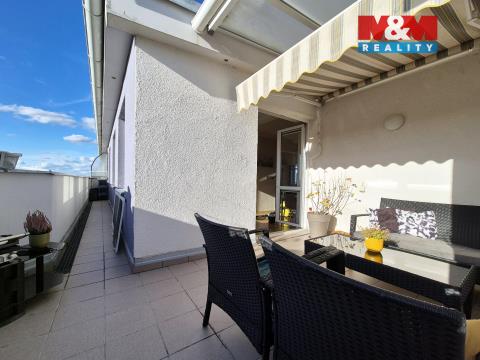 Prodej mezonetového bytu 3+kk o podlahové ploše 106 m2 s terasou 19 m2, sklepem a vlastní uzamykatelnou garáží o velikosti 15 m2 v podzemním podlaží. Byt se nachází v posledním 4. a 5. podlaží zděného bytového domu. V přízemí je předsíň, toaleta a vestavná šatní skříň. V patře je dispozičně řešeno kuchyňí s jídelním koutem propojenou s obývacím pokojem z kterého je vstup na terasu. Dále dětský pokoj, ložnice, koupelna s rohovou vanou a toaleta. Byt se prodává včetně veškerého vybavení a je tedy možné ho koupit i na investici s okamžitou možností k pronájmu, případně po dohodě vyklizený. Dům se nachází v blízkosti hradeckých lesů, které nabízí mnoho sportovních aktivit, zastávkou MHD a veškerou občanskou vybaveností v dosahu. Volný ihned k nastěhování.
