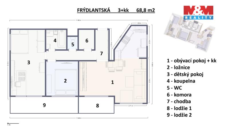 Nabízíme k prodeji mimořádně světlý družstevní byt o podlahové ploše 68,8 m² se dvěma lodžiemi (4 m² a 7 m²), situovaný ve 4. nadzemním podlaží rohového panelového domu. Byt je v družstevním vlastnictví. Po doplacení anuity je možný okamžitý převod do osobního vlastnictví, a tedy i financování hypotečním úvěrem. Dispozice bytu nabízí neprůchozí pokoje, které přináší dostatek soukromí pro rodinu i komfortní spolubydlení. Koupelna prošla rekonstrukcí a je vybavena vanou, WC je samostatné. Byt je ve velmi dobrém stavu a bez nutnosti dalších investic připraven k nastěhování. Rohová poloha jednotky a orientace na východ, jih a západ zajišťují nadstandardní přísun denního světla po celý den. Díky umístění ve 4. NP byt nabízí příjemné výhledy a zároveň dostatečný odstup od okolního ruchu. Dvě lodžie rozšiřují obytný prostor a poskytují místo pro relaxaci i praktické využití. Nemovitost je vhodná jak pro vlastní bydlení, tak jako investiční příležitost.