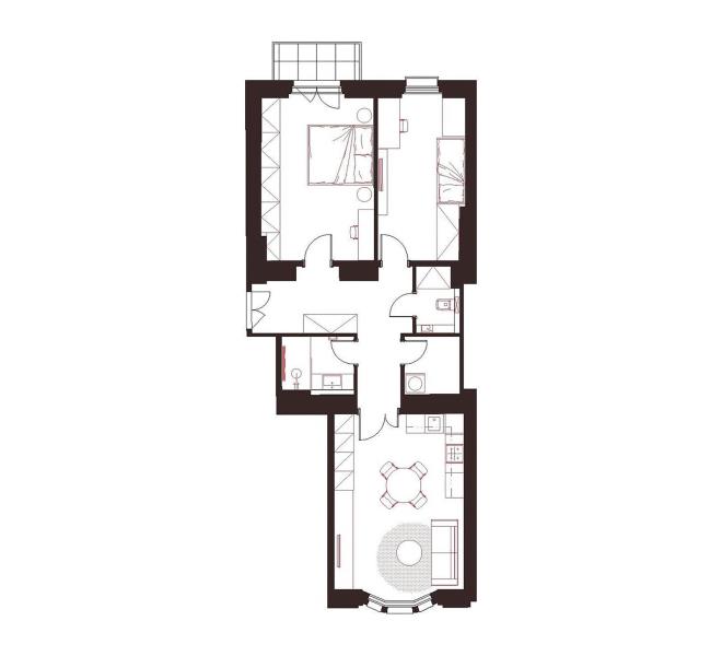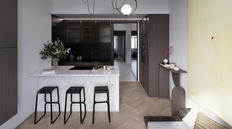 Prostorný a vyváženě řešený byt o dispozici 2+kk a podlahové ploše 85.1 m² je součástí nového rezidenčního projektu Heřmanova 24, který vzniká citlivou rekonstrukcí výjimečného kubistického domu z dvacátých let. Tento architektonický originál s charakterem Letné si zachovává svůj výrazný styl, zatímco interiéry získávají novou úroveň komfortu i řemeslného zpracování. Projekt spojuje silnou identitu domu s nároky současného bydlení a nabízí limitovaný počet bytů s důrazem na detail, materiály a nadčasovost. Dokončení je plánováno na první čtvrtletí 2027. Půdorys bytu ve 4. podlaží zahrnuje obývací pokoj s přípravou na kuchyni, ložnici, vstupní chodbu, koupelnu a toaletu. K jednotce náleží také balkon a sklepní kóje. Vybavení zahrnuje dubové podlahy, dřevěná špaletová okna s dvojsklem, elegantní interiérové dveře, koupelnu s mramorovými obklady se sanitou značek Laufen a Grohe a decentně řešená otopná tělesa a elektroinstalaci, která neruší celkový výraz interiéru. Byt bude dokončen v provedení fit out – připravený k okamžitému nastěhování. Dům po kompletní rekonstrukci má reprezentativní společné prostory, moderní výtah, repasované kamenné schodiště se zdobným zábradlím a nové technické zázemí. Rezidentům je k dispozici sauna a ve vnitrobloku pak klidné místo k posezení mezi zelení. Dům stojí v tiché části ulice Heřmanova na Letné – v místě, kde se setkává městský život s klidem. Jen pár kroků odtud se otevírá Stromovka i Letenské sady, zatímco v okolí najdete oblíbené kavárny, bistra a designové obchody. V docházkové vzdálenosti je Národní galerie, obchodní centrum Stromovka i veškeré služby pro každodenní život. Na Strossmayerovo náměstí dojdete za pět minut, metro Vltavská je v dosahu osmi minut chůze a do centra Prahy se dostanete MHD během dvanácti. Letná nabízí rovnováhu – městskou energii i prostor pro zklidnění tempa. Heřmanova 24 stojí přesně uprostřed.