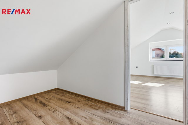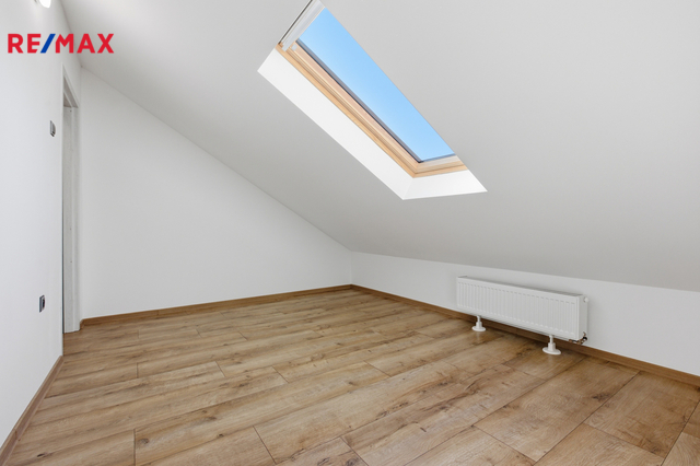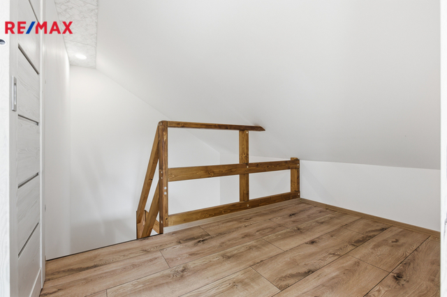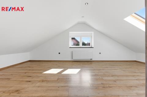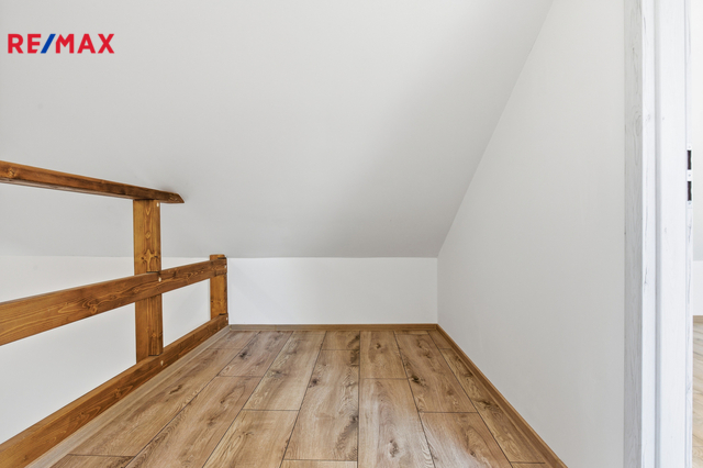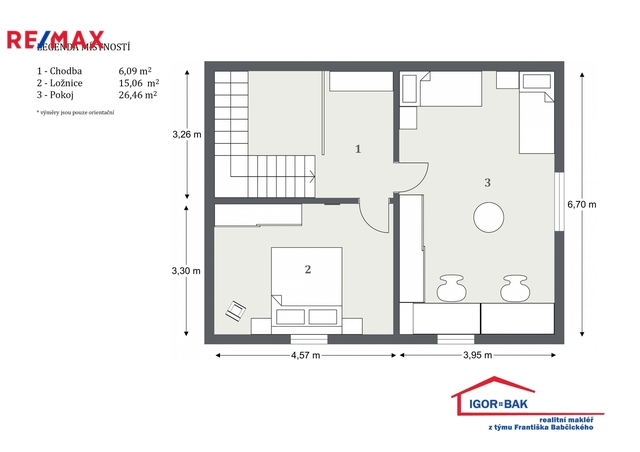 V patře se nachází chodba (6,09 m²), ložnice (15,06 m²) a prostorný pokoj (26,46 m²).