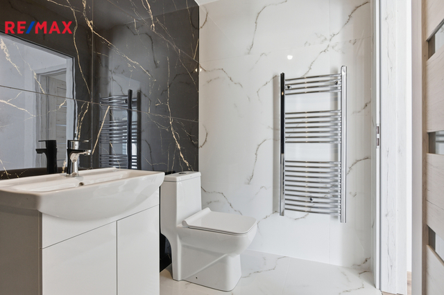 Celkově působí tento mezonet prostorně, vzdušně a světle. Díky použitým materiálům a modernímu provedení nabízí velmi příjemné bydlení v klidné lokalitě s výbornou dostupností do Prahy.