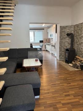 Byt s dispozicí 3+1 ve Staré Pace, ul. U Továrny se zastřešenou pergolou a zahradou. Užitná plocha bytu je 86 m2. Zahrada navazuje přímo na terasu a je umístěna na SZ stranu. Byt prošel kompletní rekonstrukcí, poslední probíhala koncem loňského roku. Dispozice přízemí: chodba, kuchyně, hlavní místnost, koupelna s WC; podkroví: dvě ložnice, koupelna. Koncem minulého roku proběhla úprava v podkroví, kde vznikly dvě místnosti a koupelna. Střecha je izolována proti úniku tepla foukanou izolací, krytina plechová. Z hlavní místnosti je přístupná terasa a zahrada, do podkroví vede dřevěné schodiště. V přízemí je samostatná kuchyně s jídelním koutem, podlahy plovoucí a dlažba. Rekonstrukce přízemí proběhla cca před 8 lety a zahrnovala úpravy podlahy, provedení nových omítek, stropu, výměně oken a rekonstrukci koupelny. Terasa byla vybudována před 4 lety. V podkrovním pokoji jsou vyvedeny všechny instalace pro kuchyň, v současnosti jsou skryty a pokoj je využíván jako ložnice. Vytápění: elektro kotel, umístěný mimo bytovou jednotku, krbová kamna v obývacím pokoji. Krb je vyvložkován a po potřebné revizi. Nejedná se o krajní byt, což je výhoda v rámci tepelných úspor. V přízemí je uzamykatelný prostor pro uložení sezónních věcí, možné využívat také půdní prostory. Celý objekt zahrnuje celkem 5 bytových jednotek a je veden jako bytový dům. Charakterem připomíná řadové rodinné bydlení s vlastním pozemkem. Předmětný byt má vstup a společnou chodbu pro 2 jednotky. S prodejem jednotky se váže též podíl na společných částech domu a pozemku. PENB nebyl vyhotoven, proto je automaticky uvedena třída G.