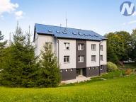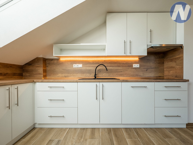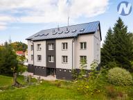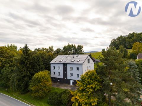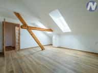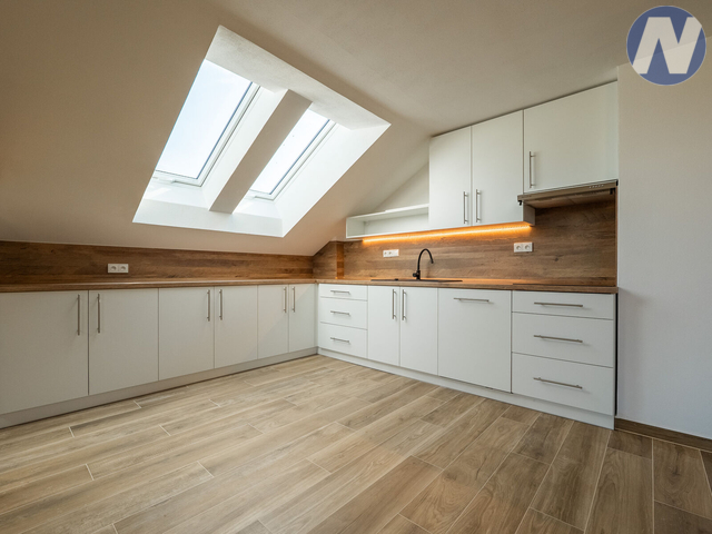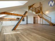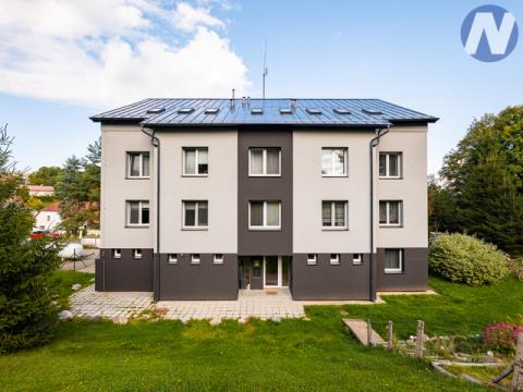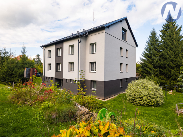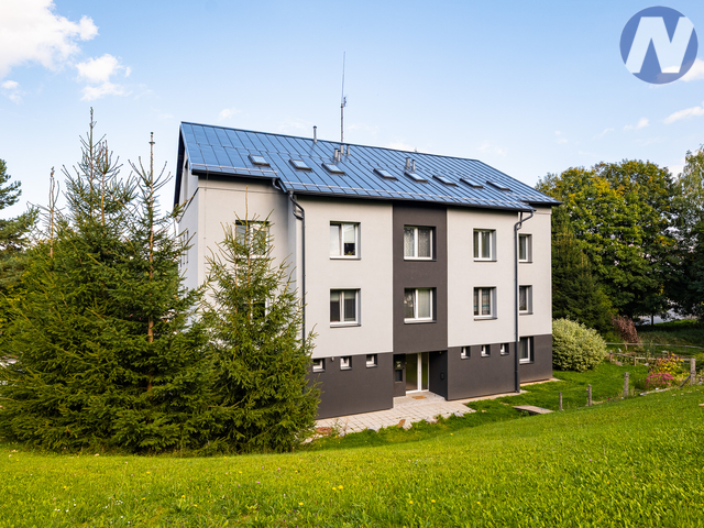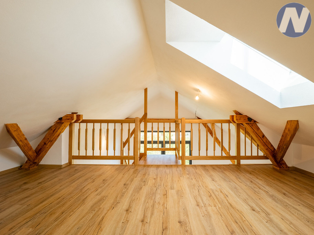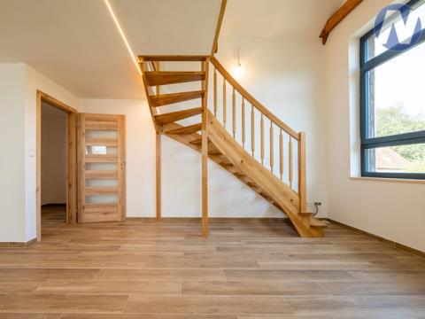 Ve výhradním zastoupení majitele nabízím k prodeji krásný, zcela nově vybudovaný mezonetový byt o dispozici 3+kk, s velkorysou podlahovou plochou 120 m2 a nebytovým prostorem v bytovém domě na okraji obce Chroboly. Obec Chroboly leží v malebné krajině Šumavy, přibližně 8 kilometrů severozápadně od Prachatic. Chroboly nabízí základní občanskou vybavenost, jako je obecní úřad, pošta, mateřská škola a prodejna potravin, hospoda. Dominantou bytu je prostorný obývací pokoj 47 m2 s moderní kuchyňskou linkou a schodištěm z masivního dřeva vedoucím do mezonetové ložnice 31,5 m2. Byt je vybaven podlahovým topením a přiznané trámy dodávají interiéru jedinečný rustikální styl. Při výstavbě bytu byly použity moderní a kvalitní materiály. Byt je slunný a díky kvalitnímu zateplení stropů i velmi teplý, což snižuje náklady spojené s užíváním bytu, kdy se jedná o energeticky úsporné bydlení s minimálními náklady na energie. Vytápění bytu je řešeno elektrokotlem, ohřev vody bojlerem. Bytový dům je napojen na obecní vodovod a kanalizaci. V domě jsou k dispozici společné prostory, jako je kočárkárna, sušárna. Samotný bytový dům prochází rozsáhlou rekonstrukcí, kdy byla dokončena výměna střechy a oken a nově došlo k zateplení celého objektu (není na fotografiích). Pozemek kolem bytového domu je ve spoluvlastnictví majitelů bytových jednotek a poskytuje dostatek soukromí k relaxaci a trávení volného času. K bytu náleží nebytový prostor 20 m2 v přízemí domu, který lze využít k soukromým nebo komerčním účelům. Na společném pozemku je dále k dispozici jezírko a společný altán se zázemím pro grilování. Parkování je možné na přilehlém parkovišti před domem. Pro více informací a prohlídku nemovitosti mě neváhejte kontaktovat.