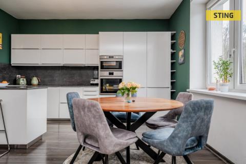 Hledáte moderní bydlení v klidném domě s bezstarostným parkováním a výhledem do zeleně? Tento nadstandardní byt 3+kk (120m2) s lodžií a šatnou nabízí vysoký komfort, dostatek soukromí i promyšlené dispoziční řešení. Hlavní přednosti bytu a domu: • atraktivní a klidná lokalita plná zeleně s výbornou dostupností do centra Ostravy • nízký cihlový dům s pouhými sedmi bytovými jednotkami • kompletní revitalizace domu proběhla přibližně před 10 lety, energetický štítek B • důraz na bezpečnost – kamerový systém a videovrátný • 2 parkovací místa v ceně • prostorná vstupní hala • snížené stropy a kvalitní odhlučnění pro maximální komfort bydlení • velkorysý obývací prostor se vstupem na prostornou lodžii (el. ovladatelná markýza) • elektrické podlahové vytápění, ovladatelné přes aplikaci • elegantní členění prostoru na obývací, jídelní a kuchyňskou část • moderní kuchyňská linka v bílém lesku včetně spotřebičů (myčka, indukční varná deska, digestoř, trouba, mikrovlnná trouba) • samostatná šatna s přívodem vody a odpadu – možnost vybudování další koupelny či WC • moderní koupelna se sprchovým koutem, vanou, kvalitními obklady, dlažbou, dvěma umyvadly a zrcadlem s osvětlením • ložnice a dětský pokoj se samostatnými vstupy – zachováno soukromí každého člena rodiny • možnost změny dispozice na 4+kk vybudováním sádrokartonové příčky • nízké měsíční náklady na bydlení: 2.976 Kč (zálohy na 4os.) Lokalita a okolí: • nejvíce zeleně v centru Ostravy, ideální pro procházky a venčení domácích mazlíčků • absolutní klid, okolní příroda, výskyt zvěře a ptactva • orientace na východ • rezidenční charakter lokality, v sousedství převážně advokátní a architektonické kanceláře • omezená budoucí výstavba v okolí • původní vila pro management továrny v Trojickém údolí • společná zahrada s možností grilování a promítání, vyžití pro děti Tento byt je ideální volbou pro ty, kteří hledají bezpečné a klidné rodinné bydlení, nadčasové provedení a zároveň chtějí investovat do kvality, komfortu a jedné z nejžádanějších adres v Ostravě. V případě dalších dotazů mne prosím kontaktujte, budu se těšit na prohlídku s Vámi. Do konce dubna 2026 nabízíme prostřednictvím našeho partnera úrokové sazby od 4,69 % p.a. Více informací Vám sdělí náš specialista na prohlídce.