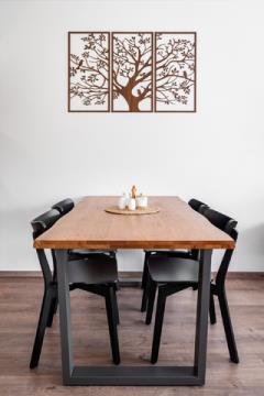 Interiér je rozdělen na část společenskou v 1. NP a klidovou v podkroví. Většinu společenské části zaujímá obývací pokoj spojený s kuchyňským koutem. Velká okna a posuvné dveře krásně prosvětlí obývací pokoj a zároveň umožňují vstup na balkon. Společenská část je dále členěna na předsíň a koupelnu s WC. Po schodišti vedoucím z obývacího pokoje lze vystoupat do podkroví, kde se nachází dva neprůchozí pokoje a druhá koupelna s WC.