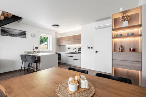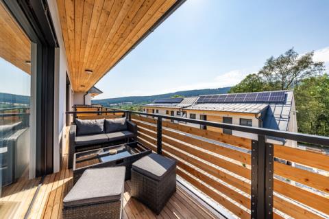 K prodeji nabízíme zkolaudovaný mezonetový krajní apartmán C6 o dispozici 3+kk (98,3 m2) s balkonem (7,2 m2) a vlastní kolárnou (17,4 m2) v nově vzniklém Resortu Alpalouka ve vyhledávané lokalitě na Špičáku v Železné Rudě. Apartmán je umístěn v energeticky velmi úsporné novostavbě (třída B).