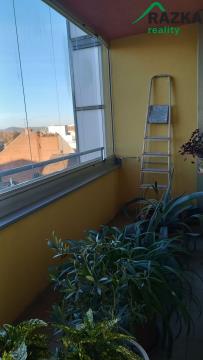 Z obývacího pokoje je vstup na jižně orientovanou lodžii (9,5 m²) a z obou ložnic je vstup na severně orientovaný balkon (7,3 m²). K bytu patří ještě skladová kóje (3 m²) umístěná ve druhém nadzemním podlaží.