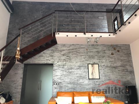 Nabízíme prodej krásného mezonetového bytu 3+kk, 130m2 v Opavě blízko Bredy. Byt se nachází ve 2. patře cihlového domu bez výtahu. Byt prošel v letech 2005 a 2006 rekonstrukcí. Ve spodní části bytu je prostorná předsíň s vestavěnými, prosklenými skříněmi po celé délce chodby, koupelna s rohovou vanou, umyvadlem, wc, napojením na pračku a s prostorem na sušičku. Z předsíně se vchází přes prosklené, mléčné, zasouvací dveře do obývacího prostoru s kuchyní. Byt je krásně slunný. V obývacím pokoji jsou designové betonové stěrky, bude zde velká rohová, kožená sedačka do tvaru L. Kuchyň je v moderním černém designu. Je zde zabudovaná lednice s mrazákem, myčka, digestoř, varná deska s troubou. V celém bytě jsou laminátové podlahy. Přes dřevěné schodiště s moderním kovovým zábradlím se vstupuje do mezonetového patra, kde je otevřená pracovna, velká ložnice, dětský pokoj a druhá koupelna se sprchovým koutem, umyvadlem a wc. Nad schodištěm a v ložnici jsou opět moderní betonové stěrky se zabudovanými světly a prosklené, mléčné dveře do pokojů a klimatizace. V koupelně je umístěný plynový kondenzační kotel. V pokojích a spodním patře jsou velká dřevěná okna. V celém bytě je hodně světla. K bytu náleží zahrada, kde je pergola i možnost parkování. Vchod na zahradu je přes zadní dveře domu nebo přes uzamykatelnou bránu. K bytu náleží velký sklep 17m2. V blízkosti domu je veškerá občanská vybavenost. Zájemci o prohlídku dle domluvy s paní Gratzovou.