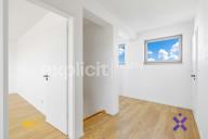 Z horní chodby je vstup do dvou prostorných pokojů, které mají přímý vstup na terasu. Místnosti lze využít jako ložnici, dětský pokoj nebo pracovnu. Na tomto podlaží je druhá koupelna se sprchovým koutem, topným žebříkem a toaletou. Dále se zde nachází prostor s přípojkou pro pračku, což umožňuje praktické a nenápadné řešení domácího zázemí. Celý byt je vytápěn podlahovým topením.