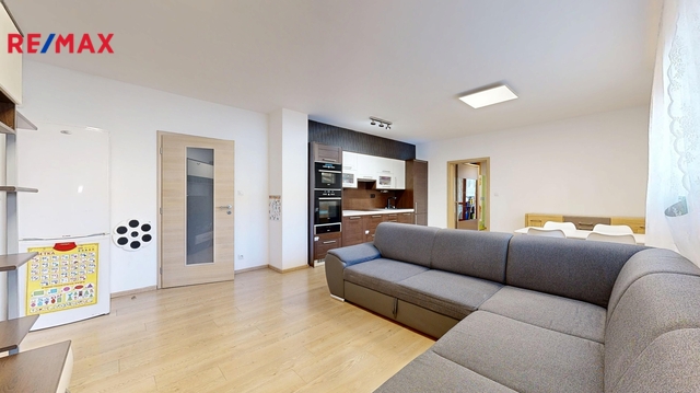 Okna v celém bytě jsou pro vyšší úsporu tepla vybaveny trojskly.