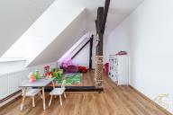 Nabízíme k prodeji velice hezký, zrekonstruovaný byt o velikosti 3+kk s celkovou výměrou 158 m². Jedná se o podkrovní byt v osobním vlastnictví nacházející se ve II. nadzemním podlaží domu. Vytápění i ohřev vody je řešeno vlastním plynovým kotlem. Od vstupních dveří vlevo se nachází pokoje a v pravé části chodby je koupelna se sprchovým koutem a samostatná toaleta. Ze společné místnosti pro kuchyň, jídelnu a obývací pokoj je i vstup do půdního prostoru o výměře 41 m² využívaného jako sklad. Pro více informací a osobní prohlídku nás neváhejte kontaktovat. S financováním poradí i pomůže kolegyně s letitou praxí a zkušenostmi s klienty právě v oblasti nemovitostí.