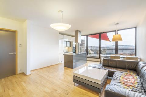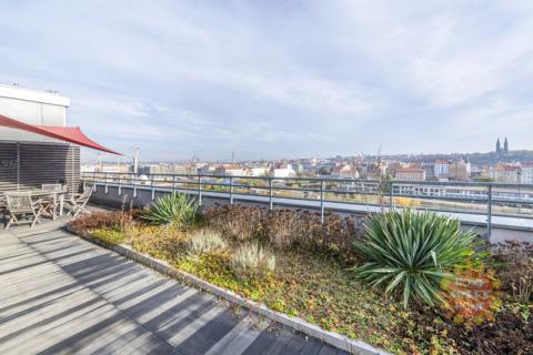 Nabízíme k prodeji jedinečný moderní byt 3+kk s prostornou terasou na Praze 5 - Smíchov, v ulici Radlická. Byt o velikosti 86,4 m2 sestává z předsíně, dvou samostatných ložnic, obývacího pokoje s kuchyňským koutem, dvou koupelen (jedna koupelna s vanou a druhá koupelna se sprchovým koutem), toalety, komory a prostorné terasy o celkové výměře 88 m2 s vířivkou a krásným výhledem na Vyšehrad. Byt se nachází v 6. (posledním) patře novostavby nedaleko Anděla. Komfortní částečně vybavený byt nabízí stylové bydlení v blízkosti centra. Kuchyňský kout je plně vybaven vestavěnými spotřebiči - lednice s mrazákem, sklokeramická varná deska, elektrická trouba, myčka nádobí. K bytu náleží sklep a dvě parkovací stání - jedno standardní a jedno menší. V bytě jsou použity kvalitní materiály, velkoformátová odhlučněná okna zajišťují dostatek světla. Moderní bydlení v oblíbené a dobře dostupné lokalitě Prahy 5. Strategická poloha nabízí veškerý komfort městského života skloubeného s přírodou. Hned u domu je park, díky čemu bydlení nabízí možnosti relaxace v přírodě. Kompletní občanská vybavenost v okolí - nedaleko obchodní centrum, fitness, kino, restaurace, kavárny, mateřské i základní školy. Skvělá dopravní dostupnost - zastávka tramvaje přímo před domem, stanice metra B nedaleko.