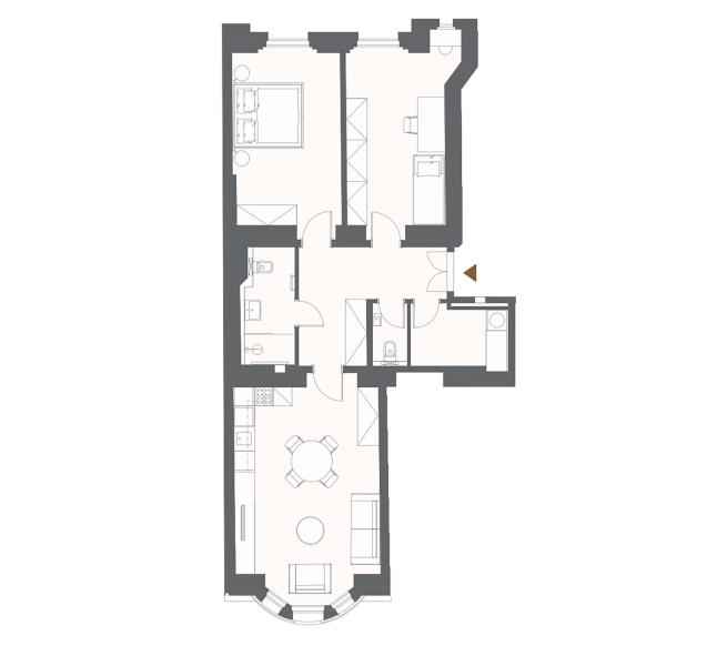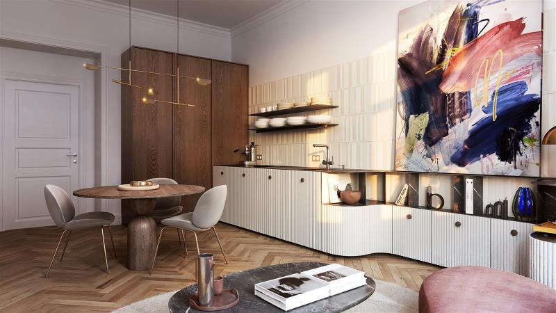 Severně / Jižně orientovaný byt o dispozici 3+kk a podlahové ploše 88,9 m² je součástí nového rezidenčního projektu Bělehradská 29, který vzniká kompletní rekonstrukcí novobarokního činžovního domu z roku 1910. Nachází se na pomezí Vinohrad a Nuslí – v živé čtvrti s kavárnami, službami i zelení, jen minutu od tramvajové zastávky Nuselské schody. Dokončení je plánováno na 3. čtvrtletí roku 2026. Půdorys bytu v 2. podlaží zahrnuje obývací pokoj s přípravou na kuchyni, dvě ložnice, vstupní chodbu, praktickou komoru, koupelnu se sprchovým koutem a samostatnou toaletou. K jednotce náleží také sklepní kóje. Vybavení zahrnuje dubové podlahy, dřevěná špaletová okna s dvojsklem, elegantní interiérové dveře, koupelnu v nadčasovém designu se sanitou značek Laufen a Grohe a decentně řešená otopná tělesa a elektroinstalaci, která neruší celkový výraz interiéru. Byt bude dokončen v provedení fit out – připravený k okamžitému nastěhování. Dům projde kompletní rekonstrukcí. Vzniknou reprezentativní společné prostory, moderní výtah, repasované kamenné schodiště se zdobným zábradlím a nové technické zázemí. Rezidentům bude k dispozici sauna, fitness, kolárna a kočárkárna, ve vnitrobloku pak klidné místo k posezení mezi zelení. Budova stojí v klidném úseku ulice Bělehradská, jen pár kroků od tramvajové zastávky Nuselské schody. V okolí jsou oblíbené podniky jako Solo Bakery, Ô-mai coffee, Las Adelitas nebo pizzerie Da Pietro, v docházkové vzdálenosti také parky Folimanka a Grébovka. Nechybí zde lékárny, školy, fitness centra ani běžné služby. Na metro I. P. Pavlova se dostanete tramvají za čtyři minuty, do centra během deseti.