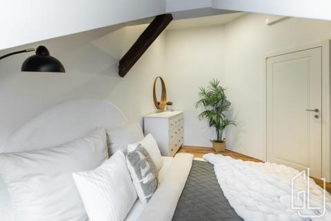 GLJ Partners exkluzivně nabízí k prodeji podkrovní byt 3+kk o celkové ploše 62,3 m, situovaný v 5. nadzemním podlaží udržovaného činžovního domu. Díky orientaci na východ směrem do Kaizlových sadů a na jih do klidné, slepé ulice Petra Slezáka je byt mimořádně světlý a zároveň příjemně tichý. Dispozice je řešena následovně: z předsíně je vstup do obývacího pokoje s kuchyňským koutem (28,4 m), ze kterého se dále vstupuje do ložnice (16,3 m) a do druhého pokoje (9,4 m), který lze využít jako pracovnu nebo druhou ložnici. Každá místnost má dostatek denního světla a příjemný výhled, ať už do zeleně parku, nebo do málo frekventované ulice Petra Slezáka. Koupelna je vybavena sprchovým koutem a je zde připravené připojení i místo pro pračku, samostatné WC je zvlášť. Byt je ve velmi dobrém stavu a nevyžaduje zásadní investice. V interiéru jsou dřevěné podlahy a dlažba, vysoké stropy a nová dřevěná okna. Byt je zároveň připraven na instalaci klimatizace. Dům v posledních letech prošel částečnou modernizací. Kuchyň je vybavena myčkou, lednicí, mikrovlnnou troubou, varnou deskou, troubou a digestoří. V bytě je instalován plynový kotel. Karlín nabízí kompletní občanskou vybavenost, oblíbené kavárny a restaurace, služby i kulturní zázemí. V blízkosti se nachází Forum Karlín a business centra, park Kaizlovy sady je přímo před domem. Stanice metra Invalidovna a Křižíkova a tramvajová zastávka Urxova jsou v pohodlné docházkové vzdálenosti přibližně 5 minut. Byt se prodává bez nábytku, po dohodě je možné vybavení odkoupit. Pro více informací a domluvení prohlídky kontaktujte makléře. Pokud zvažujete hypoteční financování, naši specialisté vám s jeho vyřízením rádi pomohou. Průkaz energetické náročnosti budovy (PENB) nebyl dodán, proto je dle zákona uvedena energetická třída G.