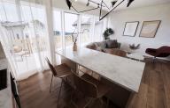 Dispoziční řešení apartmánu klade důraz na funkčnost, dostatek denního světla a plynulé propojení interiéru s exteriérem prostřednictvím prostorné terasy. Vstupní část tvoří zádveří, ze kterého se vstupuje do obytného prostoru s kuchyňskou částí a přímým výstupem na terasu. Na obytnou část navazují dva pokoje a koupelna s WC.