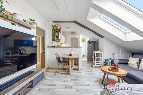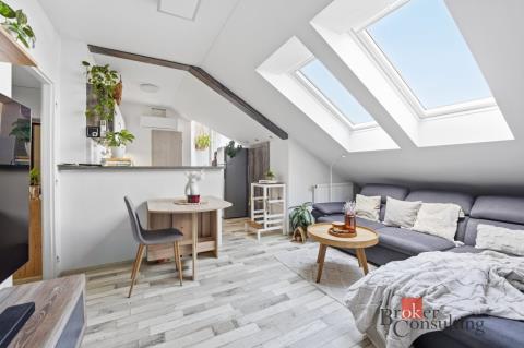 Nabízím k prodeji podkrovní byt o dispozici 3+kk a celkové ploše 65,86 m², který se nachází ve 4. patře bytového domu bez výtahu v ulici Nerudova v Sezemicích. Byt se skládá z obývacího pokoje s kuchyňským koutem, spíže, ložnice, dětského pokoje, koupelny s WC a vstupní chodby. Z obývacího pokoje je přímý vstup na balkon, který nabízí příjemné místo k odpočinku. V kuchyni je instalována klimatizační jednotka, kterou lze využívat nejen k chlazení v letních měsících, ale také k vytápění. Vytápění a ohřev vody jsou řešeny vlastním kondenzačním plynovým kotlem, přičemž náklady na plyn a elektřinu jsou velmi nízké. V bytě je zároveň zavedeno optické připojení k internetu s rychlostí až 500 Mbit/s. Byt se nachází v podkrovní části domu, což vytváří příjemnou atmosféru a zároveň zajišťuje dostatek přirozeného světla. Bytový dům prošel v minulém roce kompletním zateplením, což přispívá k lepší energetické úspornosti a nižším nákladům na bydlení. Sezemice jsou oblíbenou lokalitou v těsné blízkosti Pardubic, která nabízí kompletní občanskou vybavenost – nachází se zde škola, školka, obchody, restaurace i zdravotní služby. V blízkosti se nachází také kavárna s dětským koutkem, knihovna pro děti a park. Výhodou je také velmi dobrá dopravní dostupnost do Pardubic, a to jak autem, tak autobusovou dopravou. Lokalita zároveň nabízí dostatek zeleně a možnosti pro volnočasové aktivity, například procházky, cyklostezky nebo sportovní vyžití. Byt je vhodný jak pro vlastní bydlení, tak i jako investiční příležitost.