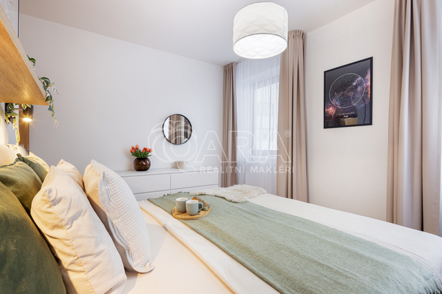Exkluzivní nabídka prodeje bytu o dispozici 3+kk s lodžií a parkovacím stáním, ul. V Kuťatech, Praha 10 – Uhříněves. Byt je umístěn ve 2.NP bytového domu s výtahem z roku 2009 nacházející se na okraji městské části. Byt o celkové výměře 66,3 m² (vnitřní plocha – 62,8 m², balkon – 3,5 m²) je vyřešen velmi prakticky a tvoří jej: vstupní chodba, koupelna se sprchovým koutem, samostatné WC, obývací pokoj s kuchyňským koutem a 2x ložnice. Z obývacího pokoje je možný vstup balkon, který je orientován na jih. Podlaha je v celém bytě plovoucí, v koupelně a v předsíni je položena dlažba. Vytápění zajišťuje vlastní plynový kotel, který je umístěn v koupelně. Dům je vybaven výtahem. Měsíční poplatky za byt jsou ve výši 4 122,- Kč + spotřeba elektřiny a plynu. Byt prošel částečnou rekonstrukcí do nadčasového designu - nová koupelna s WC (2021), kuchyňská linka (2022) a v roce 2024 byla do obývacího pokoje nainstalována klimatizace. K bytu náleží jedno venkovní parkovací stání umístěné před domem. Zastávka MHD je umístěna téměř u domu (cca 100 m) - 17 minut BUS na metro C – Háje nebo 5 minuty BUS na Nádraží Uhříněves, dále pak vlakem na Hlavní nádraží (19 minut). Dopravní obslužnost pak doplňuje dobrá dostupnost na dálnici D1 a tím i na Pražský okruh, dále pak na Štěrboholy. V místě naleznete vše potřebné, kousek od domu se nachází supermarket, školka a škola, v centru městské částí je pošta, kavárna, bankomat a přírodní památka Obora v Uhříněvsi. Hypotéka možná, rádi zařídíme.