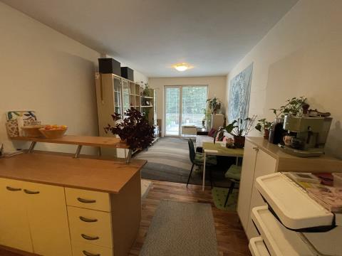 Se souhlasem majitele nabízíme k prodeji menší cihlový byt o velikosti 3+kk s prostornou terasou v Brně - Komárově, ulice Bratří Žůrků. Možnost odkoupení vyhrazeného venkovního parkovacího stání za domem, jehož cena činí 500.000 Kč. Odkoupení není podmínkou prodeje bytu. Byt je situován ve zvýšeném přízemí novějšího bytového komplexu, v klidné části lokality Brno - Komárov. Dům disponuje vlastní plynovou kotelnou a byty vlastním výměníkem. Kolaudace domu proběhla v roce 2006. V přízemí domu je umístěn sklep a je možné využít kočárkárnu/kolárnu. Výměry místností: předsíň 7,73 m2; koupelna 3,47 m2; WC 0,99 m2; pokoj s kuchyňským koutem 23,50 m2; pokoj 7,88 m2; pokoj 6,65 m2; sklep 1,60 m2; terasa 17,64 m2. Dispozice: všechny pokoje mají samostatné vstupy, v koupelně je vana a nové umyvadlo, WC je samostatné Vybavení: Kuchyňská linka se spotřebiči: nová sklokeramická varná deska s indukcí, trouba, lednice s mrazákem, myčka, digestoř, barový stůl a židle. Náklady na bydlení: 4.700,-Kč/měsíc včetně energií Možnost kabelové TV a internetu. Byt je čerstvě vymalován a je připraven k okamžitému nastěhování. Tato nemovitost je vhodná k investici a je možné ji pronajmout za 22.000 Kč + služby a energie. Bližší informace v RK.