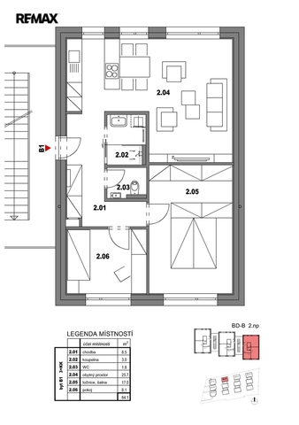 Byt je navržen tak, aby poskytoval příjemně prosvětlený a funkční prostor pro páry, rodiny i jednotlivce. Dispozice 3+kk nabízí praktické uspořádání s důrazem na komfort, dostatek úložných míst i provázanost obytné zóny s kuchyní.