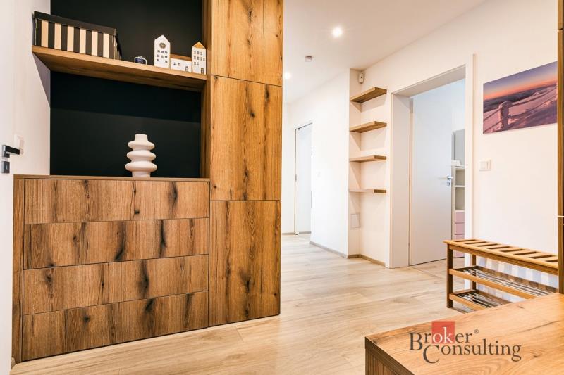 Byt 3+kk se zahradou a dvěma parkovacími stáními – Hronov, ul. Husova Nabízíme k prodeji byt o dispozici 3+kk a výměře 70 m² se soukromou zahradou, který se nachází v menším bytovém domě v klidné části města Hronov, ul. Husova. Součástí nemovitosti jsou také dvě parkovací stání přímo u domu a prostorný sklep. Byt tvoří obývací pokoj s kuchyňským koutem a vstupem na zahradu (HS portál), ložnice, dětský pokoj, koupelna a samostatné WC. V celém bytě je instalováno podlahové vytápění, které zajišťuje příjemný tepelný komfort. Byt je vybaven kuchyňskou linkou a nábytkem na míru, který je součástí prodeje. Zahrada nabízí příjemné soukromí a je vybavena terasou, venkovním osvětlením, přívodem vody a elektrickými zásuvkami (230 V a 380 V). Praktickou výhodou je také přímý vstup z parkovacích stání na zahradu přes branku. Byt i sklep je vybaven zabezpečovacím systémem Jablotron a kamerovým systémem, které lze ovládat prostřednictvím mobilní aplikace. Podlahy v obytných místnostech jsou vinylové, v koupelně a na WC je dlažba. Bytový dům má pouze 10 bytových jednotek a je vytápěn společnou plynovou kotelnou. Výborná občanská vybavenost v pěší dostupnosti – mateřská škola (150 m), základní škola (500 m), dětská hřiště (300 - 1000 m), obchod s potravinami Konzum a drogerie Teta (500 m), Penny Market (600 m), vlakové nádraží (500 m), zdravotní středisko (100 m), zimní stadion (150 m), tělocvična Sokol (250 m), cyklostezky v okolí. Hronov je také dobrým výchozím bodem do turisticky významných lokalit jako Adršpašsko-teplické skály, Orlické hory a Krkonoše. Měsíční náklady: služby cca 5 000 Kč, elektřina cca 1 500 Kč.
