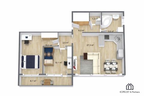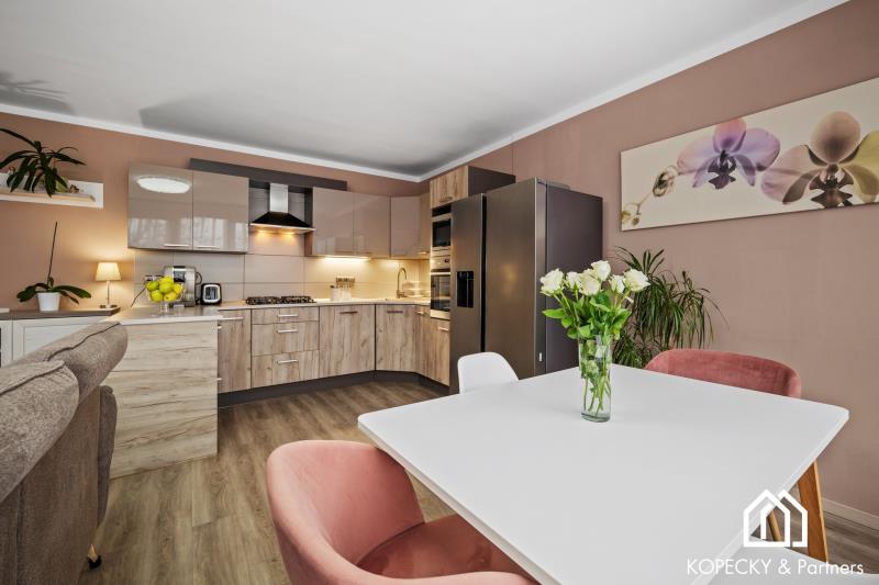 Byt prošel rekonstrukcí v roce 2018, díky čemuž působí moderně, čistě a nadčasově. Dispozice 3+kk je prakticky řešená – obývací část s kuchyňským koutem tvoří přirozené centrum bytu, navazují na ni dva samostatné pokoje, které mohou sloužit jako ložnice a dětský pokoj, případně pracovna. Samozřejmostí je koupelna, samostatné WC a předsíň s prostorem pro vestavné úložné řešení.