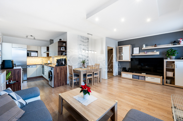 Hledáte světlý, dobře dispozičně řešený byt v klidné lokalitě se skvělou dostupností? Právě pro vás tu máme byt 3+kk s užitnou plochou 72 m² (z toho byt 65,4 m²; lodžie 6,6 m²), který vás potěší nejen svým prostorem, ale i výhledem na Starý hořovický zámek. Nachází se ve 3. patře panelového domu po kompletní revitalizaci – zateplená fasáda, plastová okna, nová střecha. Dům má pouze jeden vchod a celkem 31 bytových jednotek, což zajišťuje příjemné a klidné sousedské prostředí. Dispozice a vybavení: Byt prošel před deseti lety rozsáhlou rekonstrukcí – zděné jádro, nové rozvody vody, odpadu i elektřiny (měď), nové sádrokartonové příčky a vnitřní dveře. V obývacím pokoji a kuchyni je plovoucí podlaha, v ložnicích koberce, v předsíni, koupelně a na WC dlažba. Velkou výhodou je zasklená lodžie orientovaná na jihozápad – ideální pro relaxaci s výhledem na zámek. Všechna okna bytu jsou orientována stejným směrem, takže byt je krásně světlý po celý den. Součástí bytu je praktická komora přímo naproti bytu a sklepní kóje v suterénu (1 m²). Vytápění i ohřev vody zajišťuje centrální plynový kondenzační kotel pro celý dům – efektivní a úsporné řešení. Lokalita: Hořovice jsou perfektní místo pro život – najdete tu kompletní občanskou vybavenost (školy, školky, nemocnici, obchody, sportoviště) a výborné dopravní spojení. Do Prahy nebo Plzně jste za pár desítek minut – díky blízkosti dálnice D5 i vlakovému a autobusovému spojení. A pokud rádi trávíte čas venku, oceníte blízkost zámeckého parku a Brdských lesů, které jsou jako stvořené pro procházky a výlety. Zaujala vás tahle nabídka? Ozvěte se nám a domluvte si prohlídku nejlépe e-mailem. Rádi vás bytem provedeme osobně.